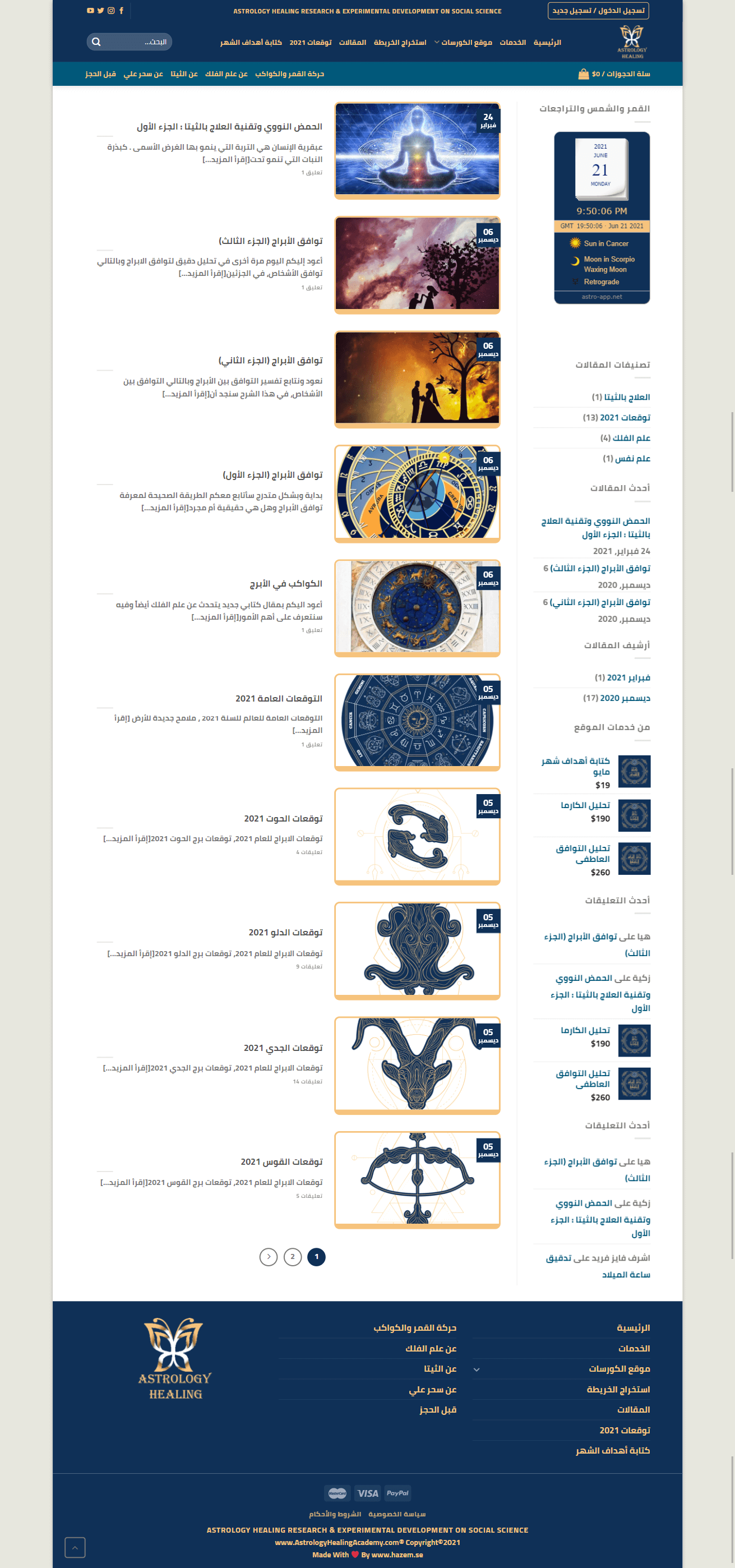 Astrology Healing Academy este un website care ofera servicii de citire astrologica, include o sectiune de cursuri online si un blog. Acest website este bine cunoscut in lumea araba, mai special de catre cei 85000+ de abonati ai proprietarei canalului de Youtube.